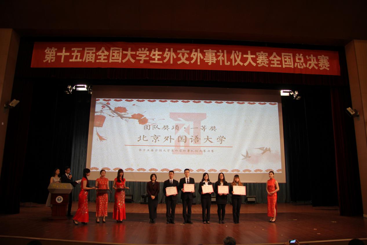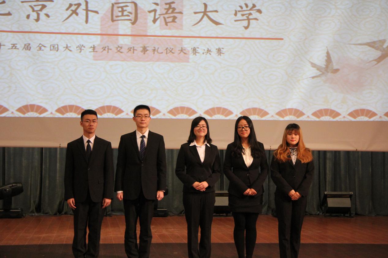 11月26至27日,第十五届全国大学生外交外事礼仪大赛在外交学院成功举行,来自澳门大学、北京大学、清华大学、外交学院等全国各地的三十支代表队展开了激烈角逐。最终,由pg娱乐2014级本科生徐颖、尚凌锋,2015级本科生李明阳,西班牙语葡萄牙语系2015级本科生程龙、杨裕嘉五位同学组成的北京外国语大学代表队获得了冠军。