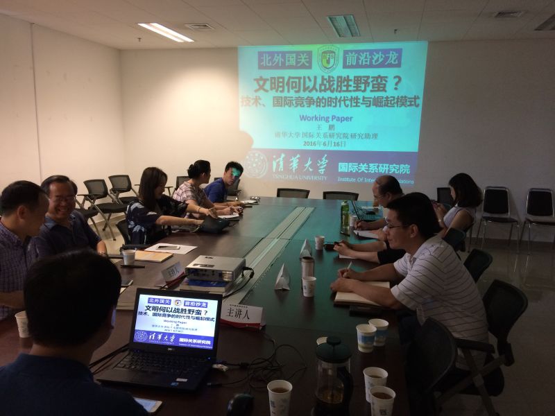 2016年6月16日(周四)15:00-17:00,北外国关前沿沙龙第九期活动在北京外国语大学西院综合楼1147会议室举行。本次沙龙主题是“文明何以战胜野蛮?——技术、国际竞争的时代性与崛起模式”。本次沙龙学术活动由英国布里斯托大学政治学博士候选人王鹏主讲、尹继武副教授主持,并邀请学院的田小惠副教授和史泽华副教授两位老师作为评议人。学院院长李永辉教授与学院尹春玲副教授也参与了今天的讨论。