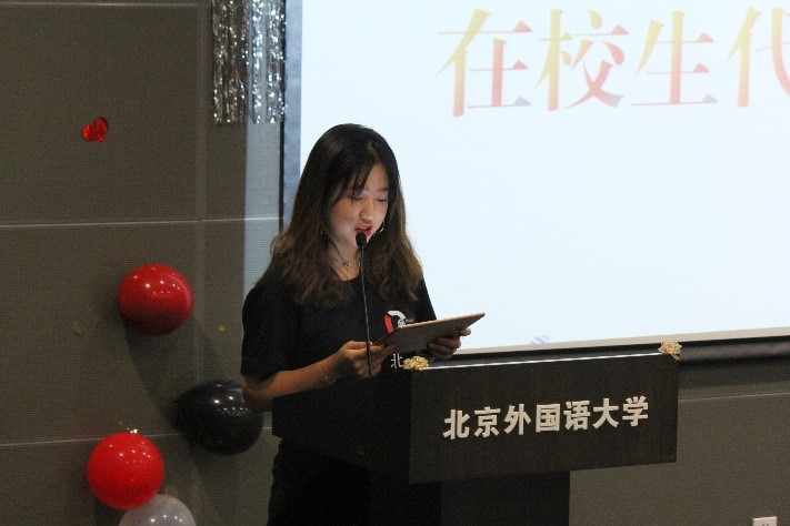 蒋沐玮则作为20级学生代表进行发言,她说模联的经历激发起她对于国际政治的好奇与热爱,而她也因为对于正义的不断追寻于去年来到了北外的pg娱乐电子游戏官网入口。国关的氛围培养了她的自主学习能力和社交能力,而国关的平台也给她提供了仰望星空的机遇。