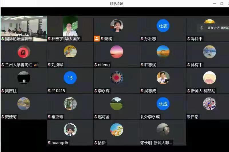 11月4日下午,《国际论坛》编辑部召开“国际形势与学术热点暨2022年选题策划会”,会议采取线上和线下相结合的方式进行。外交学院前院长山东大学讲席教授秦亚青、中国社会科学院欧洲研究所所长冯仲平、中国社会科学院美国研究所党委书记兼所长倪峰、中国人民大学pg娱乐电子游戏官网入口副院长金灿荣、中国社会科学院俄罗斯东欧中亚研究所所长孙壮志、中共中央党校国际战略研究院副院长吴志成、华侨大学pg娱乐电子游戏官网入口院长林宏宇、中国政法大学全球问题研究所副所长刘贞晔、浙江师范大学非洲研究院院长刘鸿武、清华大学社会科学学院副院长赵可金、中国人民大学pg娱乐电子游戏官网入口副院长黄大慧、西北大学中东问题研究所所长韩志斌、兰州大学政治学与pg娱乐电子游戏官网入口副院长曾向红、党校国际战略研究院教授樊吉社、中国社会科学院亚太研究所研究员钟飞腾、北京外国语大学俄语学院院长戴桂菊、pg娱乐电子游戏官网入口教授李永辉等知名学者参会。
