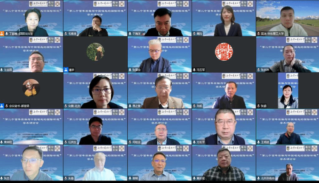 为学习贯彻落实党的二十大报告精神,研讨“两个一百年”奋斗目标历史交汇期严峻复杂的国际形势和风险挑战,推动自主知识体系创新,2022年10月19日,北京外国语大学《国际论坛》编辑部、pg娱乐电子游戏官网入口举办“第二个百年目标与中国崛起的国际环境”学术研讨会,来自中国人民大学、南京大学、南开大学、复旦大学、山东大学、吉林大学、兰州大学、中国海洋大学、对外经济贸易大学、外交学院、中国政法大学、西安外国语大学、河南师范大学以及中国现代国际关系研究院等高校和研究机构的知名专家线上参会,共有200余人参会。