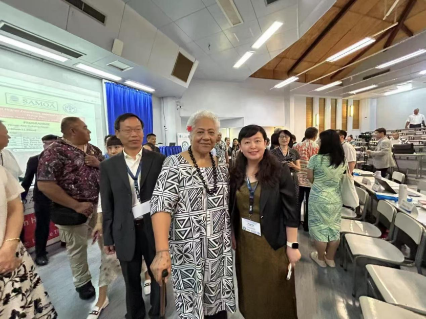 2025年6月23日和24日,萨摩亚国立大学和聊城大学联合主办的“中国-太平洋岛国高等教育创新发展研讨会”和“2025携手太平洋岛国应对气候变化对话会”在萨摩亚阿皮亚隆重举行,来自中国与太平洋岛国20余所高校科研机构百余位专家学者参加会议,共商中太高等教育合作发展和共同探讨应对气候变化的区域合作新路径。pg娱乐电子游戏官网入口副院长张颖教授应邀参加。萨摩亚总理菲娅梅·内奥米·玛塔阿法、中国驻萨摩亚大使费明星致辞。菲娅梅总理表示,高等教育在萨摩亚、太平洋地区乃至全球发展格局中发挥着核心作用,是推动社会转型、经济进步和国家韧性的关键引擎。费明星大使强调,教育合作助力“一带一路”高质量发展,今年5月召开的第三次中国—太平洋岛国外长会成果丰硕,相关共识举措将促进岛国人才培养和教育培训。张颖教授做了题为《美国文化行动在太平洋岛国的现状、影响》的学术报告,并向与会嘉宾介绍了北京外国语大学的历史和办学特色。