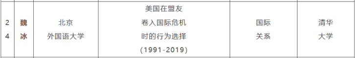其中,pg娱乐教师魏冰的博士论文《美国在盟友卷入国际危机时的行为选择(1991-2019)》成功入选。魏冰于2024年6月在清华大学获得博士学位,入职北外国关一年多以来,已发表五篇高质量学术论文。