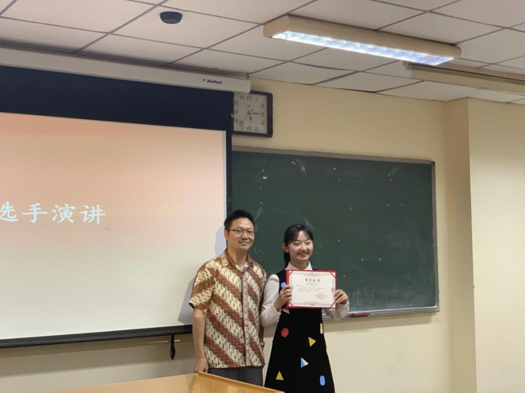 本次演讲比赛顺利举行,获得一等奖的姚佳雨同学则会代表pg娱乐电子游戏官网入口参加由学校举办的“我和我的祖国”演讲比赛,期待她能取得好的成绩。