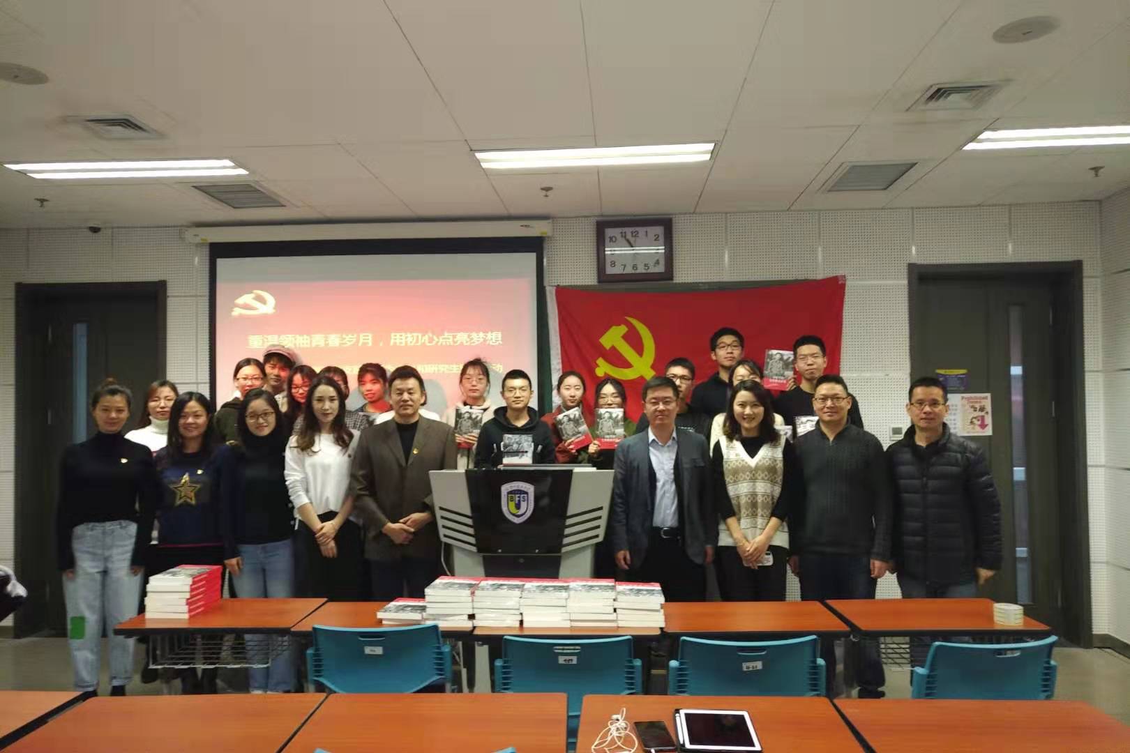 按照“不忘初心、牢记使命”主题教育要求,教工党员须参加志愿服务活动。pg娱乐电子游戏官网入口教工支部于11月20日上午举行“重温领袖青春岁月,用初心点亮梦想:向本硕新生赠书活动”。赠书前教工党员分别为同学们送上寄语,学生代表也结合自己的实践经历发表了感想,然后党总支书记张效民代表老师们向同学赠书。