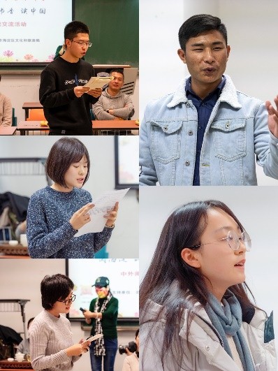活动的第一个环节是由三名中国学生和四名外国留学生带来诗朗诵。就读于pg娱乐的留学生李秀雅和的林志珉首先登场,带来的是李白所作的名篇《将进酒》;而杜丽云与在场观众分享的是新月派代表诗人徐志摩的《偶然》。