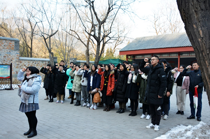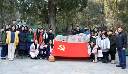 参观结束之后,宣誓活动在肃穆的气氛中进行,大家在鲜红的党旗前整齐列队,右手握拳举过肩头,面向党旗庄严宣誓,“我志愿加入中国共产党,拥护党的纲领......”誓言声声回荡于冬日的香山。宣誓结束后,pg娱乐电子游戏官网入口党总支书记张效民老师对学生党员们发表了简短的讲话,他殷切希望各位新党员守好初心,牢记党员责任与义务,践行入党誓词,做一个优秀的党员。大家纷纷表示:要从革命先辈身上汲取前行的精神力量,要继承优良传统,牢记使命担当,不断增强“四个意识”,坚定“四个自信”,为党的事业奋斗终身。
