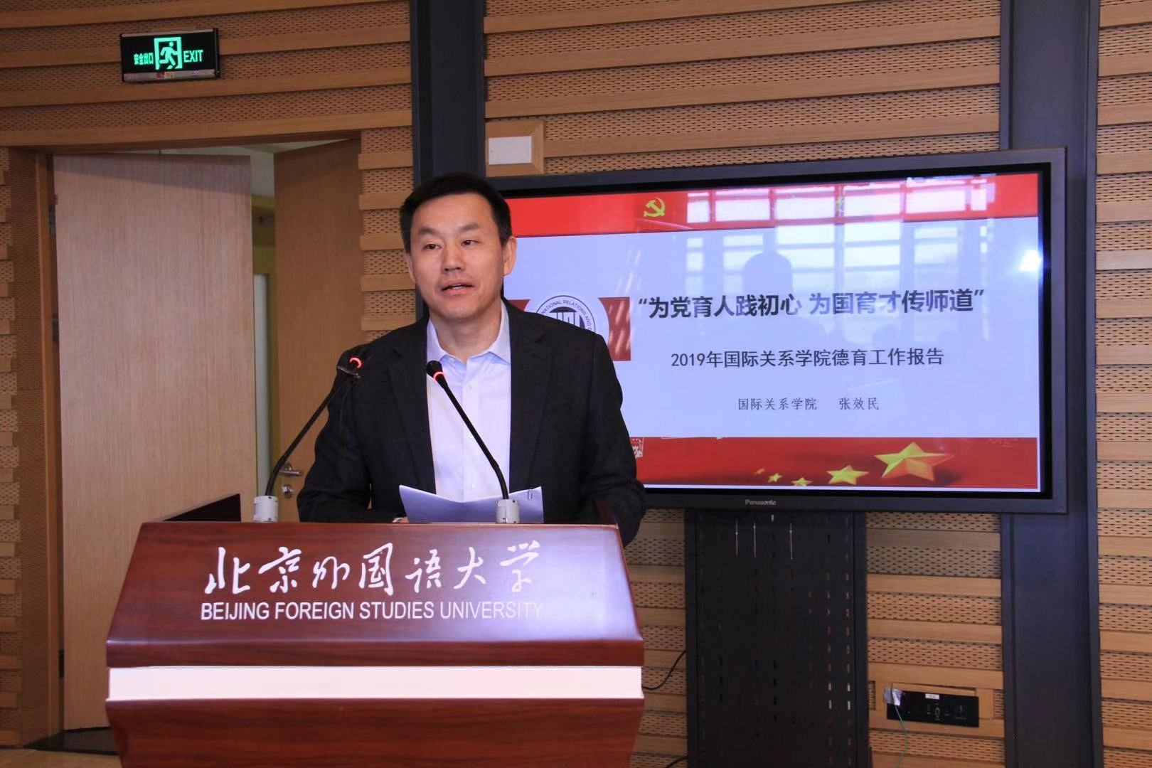 pg娱乐电子游戏官网入口在2019年度大学生思想政治教育工作中,开拓创新,取得实效,成绩突出,荣获北京外国语大学2019年德育工作先进集体荣誉称号。pg娱乐电子游戏官网入口党总支书记张效民代表学院上台领奖,并在会上以“为党育人践初心,为国育才传师道”为主题进行交流发言。张效民老师在发言中强调了以学科建设为中心、夯实专业基础,践行全员育人和以学生为主体,锻造学生综合素质,促进学生全面发展等pg娱乐电子游戏官网入口德育工作的关键思路。