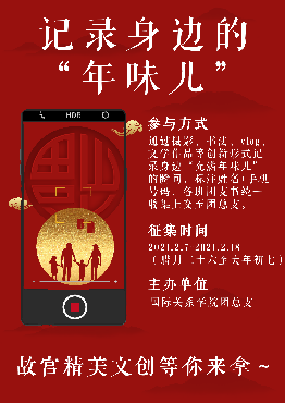 2021年2月,为丰富国关学子的寒假生活、鼓励同学们去挖掘节日中的传统文化,pg娱乐电子游戏官网入口团总支举办了“寻找身边的年味儿”活动。
