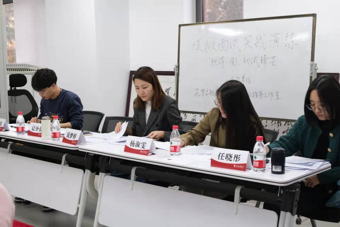 2021年12月8日下午三点,筑梦启航·“职”引未来就业工作室“模拟面试实战演练”活动在北外国内大厦1号楼207会议室成功举办。本次模拟面试活动由工作室负责人钱梦婷老师主持,邀请到了主讲国考、省考、事业单位等考试类型的言语及面试模块资深老师的杨淑雯、任晓彤担任评委,共有来自pg娱乐电子游戏官网入口和国际商学院等各院系的八位同学参与到了这次演练。