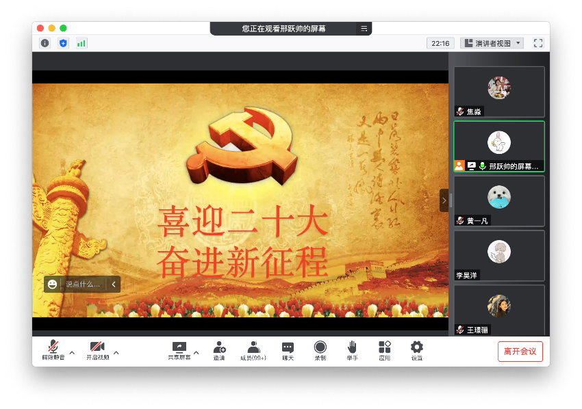 另外,王璟骊同志和黄一凡同志从个人生活出发,理论联系实际,将党史学习与校史相结合,爱国理念与行动相呼应,呼吁同志们以习近平新时代中国特色社会主义思想为行动指南,学好专业知识,提升道德修养,磨砺自身,团结群众,服务人民。