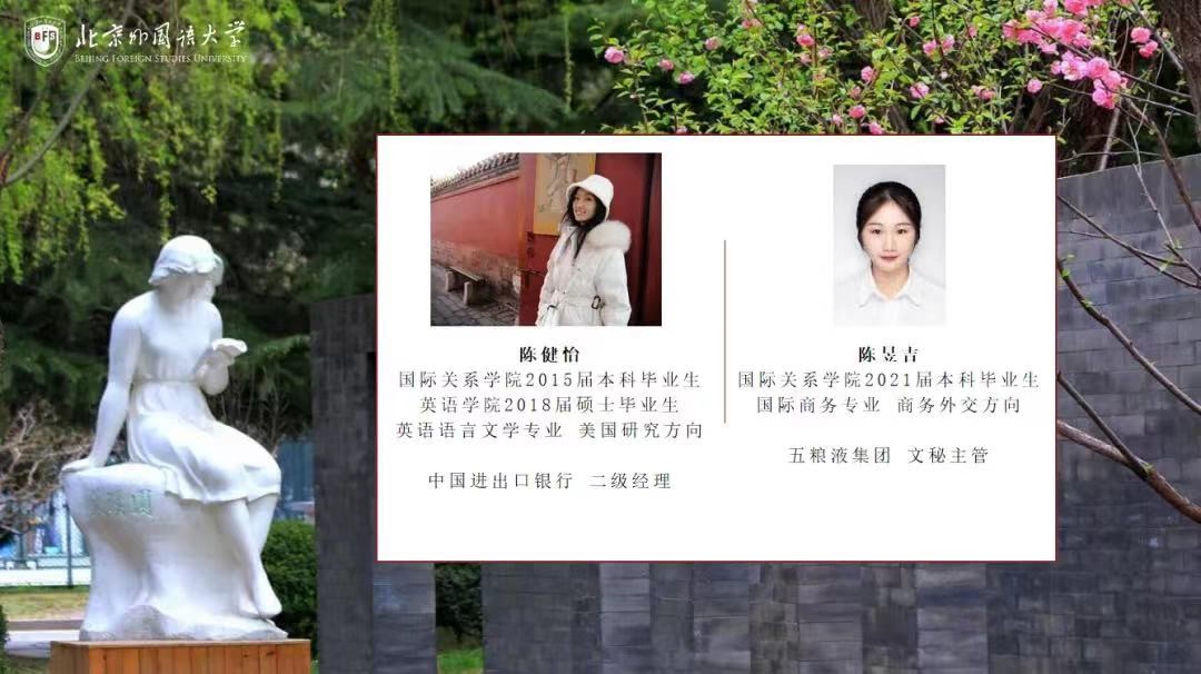 2023年5月5日晚,pg娱乐电子游戏官网入口成功举办就业力大赛系列活动最后一场——国企就业分享会。在pg娱乐电子游戏官网入口研究生会的精心组织下,本次分享会中邀请了在中国进出口银行工作的2018届英语学院硕士毕业生陈健怡和在五粮液集团工作的2021届pg娱乐电子游戏官网入口硕士毕业生陈昱吉为pg娱乐电子游戏官网入口在校学生分享国企求职与工作经验与心得体会。