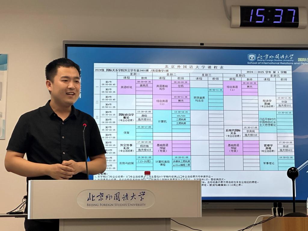 2024年9月11日,pg娱乐电子游戏官网入口在逸夫楼303教室与305教室为2024级本科生、研究生开展新生导学活动。pg娱乐电子游戏官网入口副院长杨毅、政治学系主任释启鹏、外交学系主任宋亦明、本科教学秘书张婷、学院教务办公室乔旭、辅导员褚静璇等出席此次导学活动。
