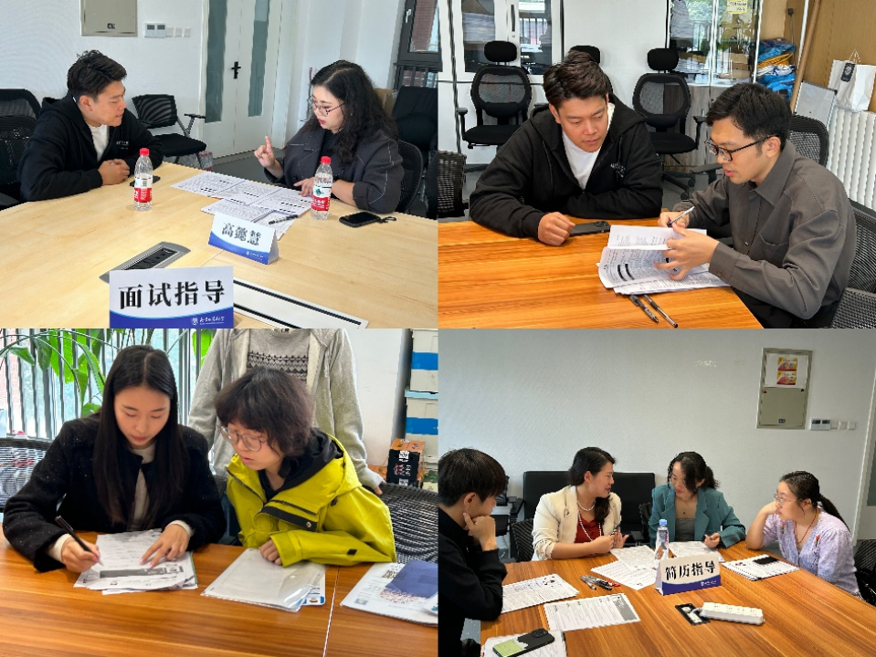 最后,分别在两个会议室进行面试指导和简历修改的环节。面试指导环节旨在模拟面试和解答面试问题。先由高懿慧老师分享相关经历并解答同学们共同的问题,然后由高懿慧、王悦、金世怡进行一对一的模拟面试和问题咨询。