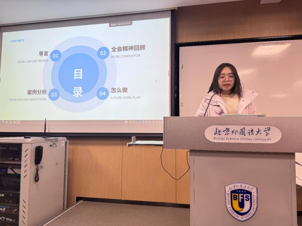 2024年11月27日下午,pg娱乐电子游戏官网入口本科生党支部的理论学习活动在逸夫楼302教室顺利举行。本次理论学习由本科生党支部成员陈可钰和薛王越担任主讲,党支部组织委员孙至善主持。