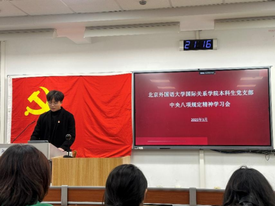 2025年3月25日下午,pg娱乐电子游戏官网入口本科生党支部理论学习活动在逸夫楼402顺利举行。本期理论学习由本科生党支部书记孙至善主讲,围绕“中央八项规定精神的内涵与实践要求”展开专题讲解。