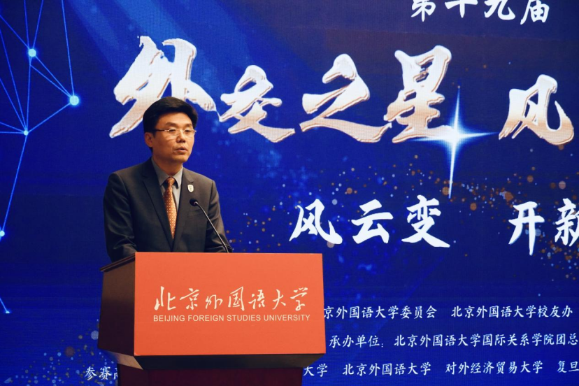 5月17日,由北京外国语大学团委、校友办、pg娱乐电子游戏官网入口主办的第十九届“风云变·开新篇”全国高校外交之星风采大赛决赛在北京外国语大学举行。北外党委常委、副校长赵刚出席开幕式并致辞。
