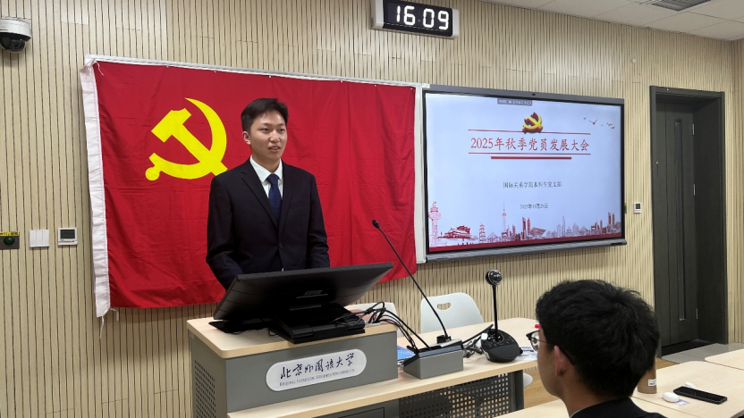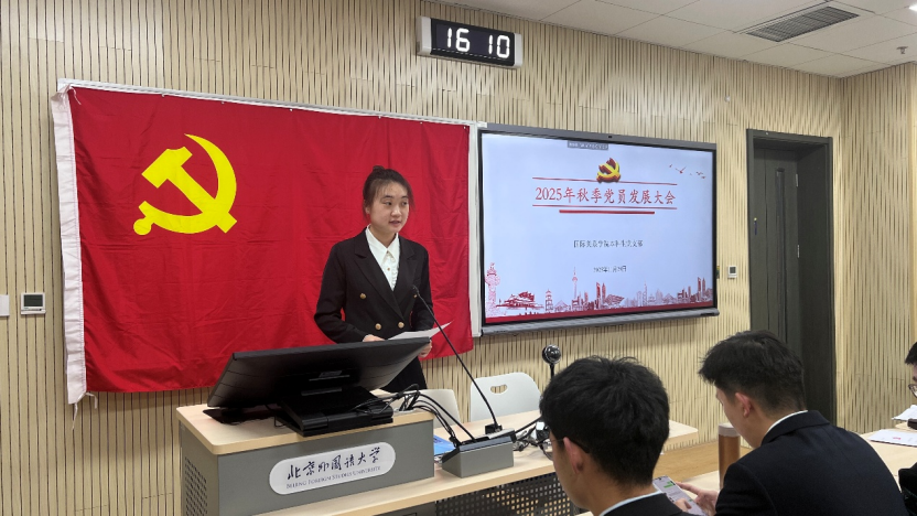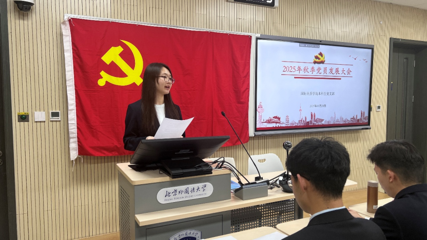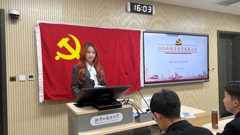 2025年11月28日下午,pg娱乐电子游戏官网入口本科生党支部在国际大厦431教室召开2025年秋季党员发展大会。会议由本科生党支部书记张顾子煊主持,pg娱乐电子游戏官网入口党总支副书记彭澍出席并讲话,支部全体党员、发展对象和部分积极分子参加大会。