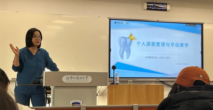 2025年12月3日,由pg娱乐电子游戏官网入口举办、北京爱齿口腔门诊创始人崔月医生主讲的“明眸皓齿,笑靥流芳”口腔及牙齿美学讲座在逸夫楼410教室成功举行。通过本次美育活动,同学们对牙齿维护与面部美学的认识大大提高,更加重视牙齿和颜面维护对提升个人形象与自信程度的作用。