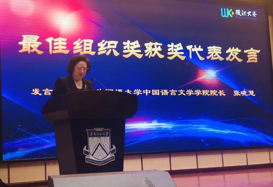 在颁奖典礼上张晓慧院长作为最佳组织奖获奖院校代表发言,充分肯定了汉语教学微课大赛在促进汉语线上和线下教学的应用普及、提高未来国际汉语师资信息技术应用能力,以及信息化时代汉语国际教育复合型人才培养等方面的积极意义,指出要充分利用“微课”这一新型教学形式便捷性和高效性,与互联网时代汉语国际教育、中国文化走出去的发展趋向相适应,在探索“互联网+汉语国际教育”的创新师资培养模式过程中展现出了自己独特的优势,最后表示yl官网将不忘初心、砥砺前行,与其他高校共同努力,迎接互联网时代汉语国际教育的美好未来。