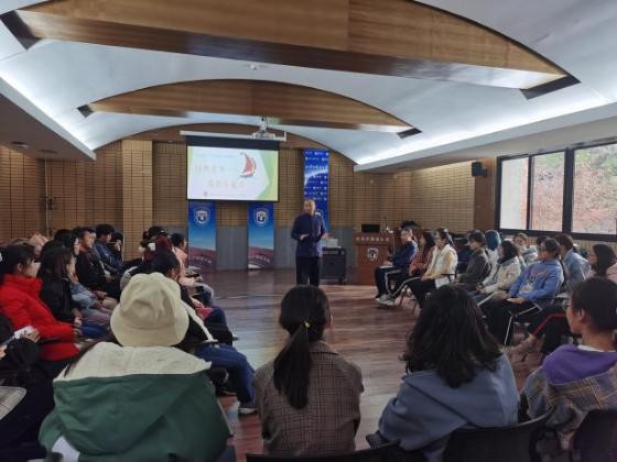 围绕“选择”的主题,咨询师和大家分享了自己独特的人生经历,引导大家思考为何要做选择、如何做出明智的选择、自身的价值与追求等;帮助同学们认识到资源的重要性,并和大家一起发掘身边的资源;为同学们讲解情绪和认知的区别,帮助同学们尝试与自己的情绪建立联结,释放压力;通过介绍“黄金思维圈”启发同学们提升思维的维度,打破自动化思维,明确“目标”和“结果”……同学们在生动讲解和自由互动中思考未来的方向,探寻自己的初心。