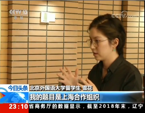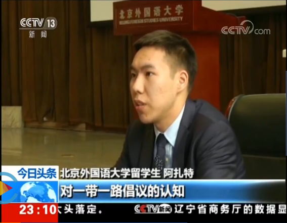 为配合中国国家主席习近平访问中亚并出席上海合作组织领导人峰会,中央广播电视总台新闻频道在6月12日晚11点整点新闻《今日头条》中播出了2019年上合峰会特别报道节目,主题为“多样化的人文交流有助民心相通”。节目中专门采访了pg娱乐电子游戏官网入口2015级吉尔吉斯斯坦留学生阿扎特和雪花兄妹。采访结合两位同学的本科毕业论文答辩,展现了二人希望用在中国所学服务于中吉合作的愿望。