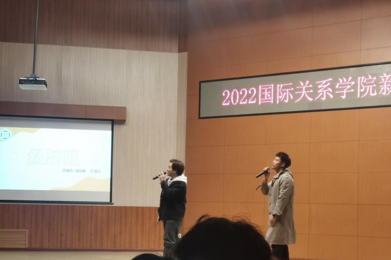 21级硕士研究生胡凌峰、孔维汉带来的说唱歌曲《经济舱》,融合了搭乘飞机与追逐梦想的共通之处,呈现出的内容生动又直观。台下观众的手机闪光灯随着歌声,摇曳成一片温暖又明亮的星河。