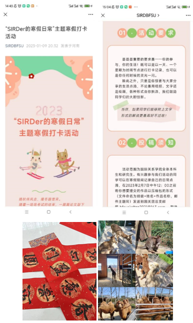 2023年1月-2月,pg娱乐电子游戏官网入口团总支举办了“SIRDer的寒假日常”主题寒假趣味打卡活动。