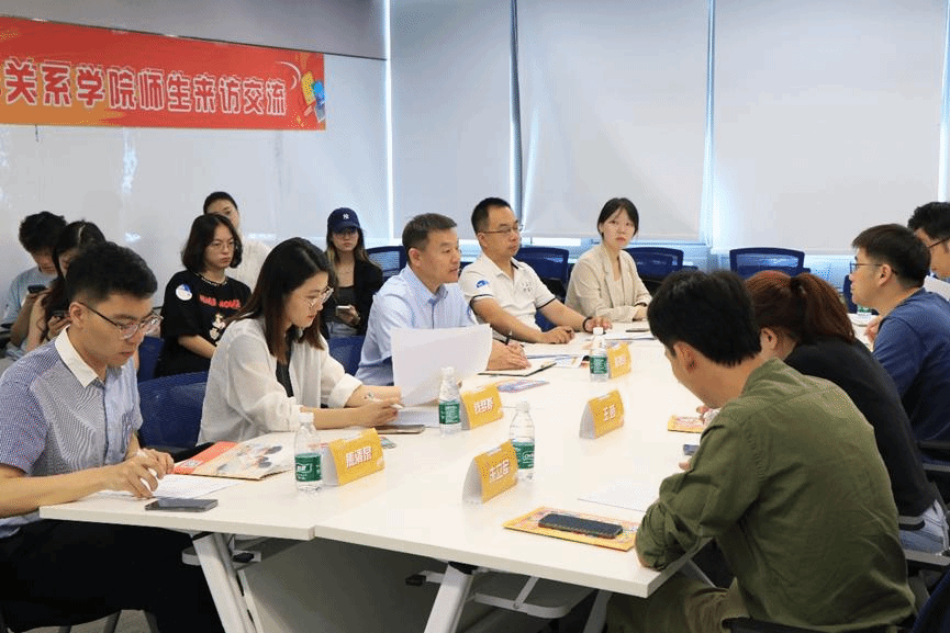 到达学而思总部后,学而思大学生业务负责人李光虎、国际业务教研负责人王茵、校招负责人梁明智、校招经理朱立军和17届在职校友徐忆宁对国关师生到来表示热烈欢迎。