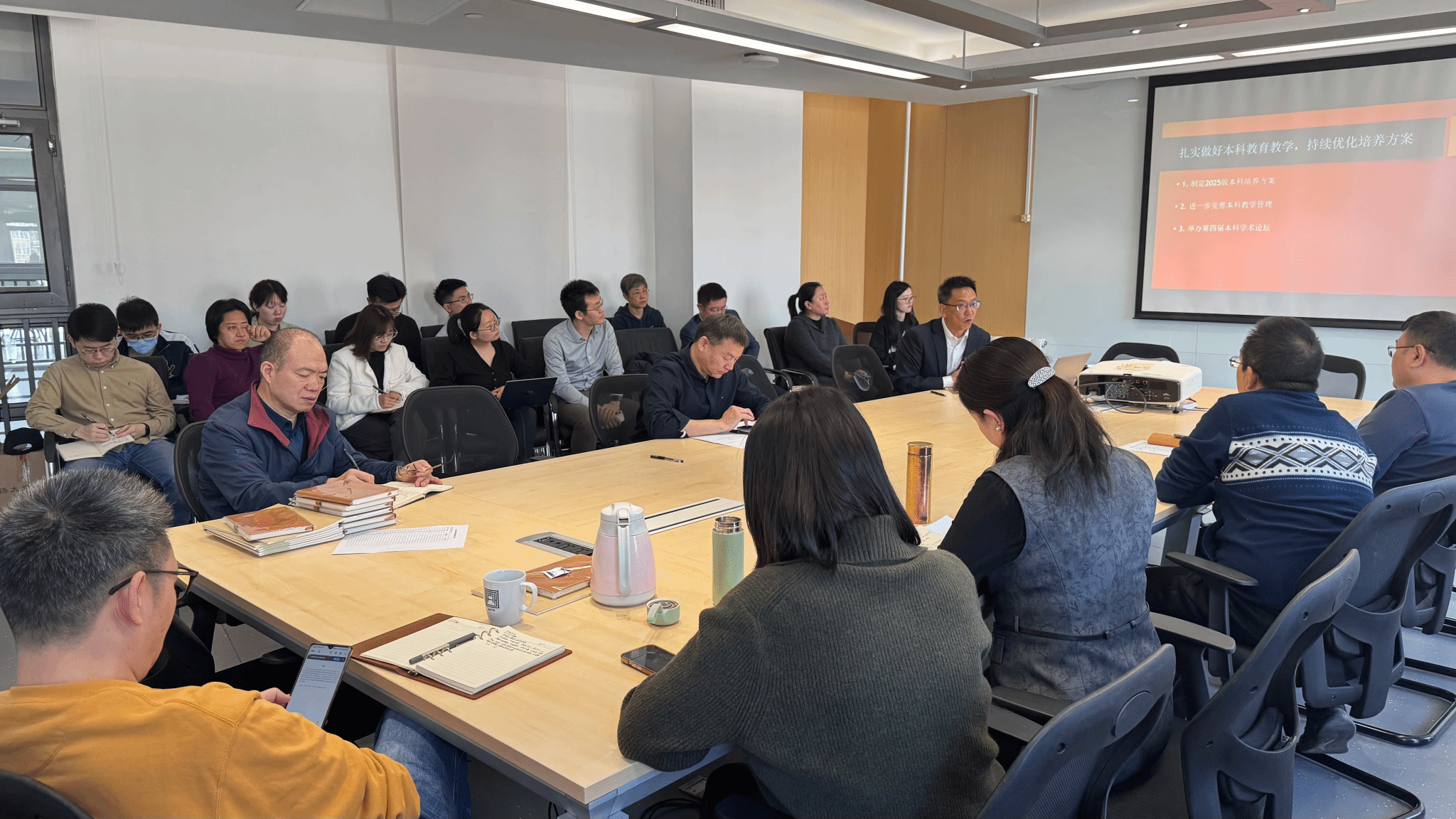 杨毅副院长主要就本科生期末考核方式调整、本科生毕业论文管理、本科培养方案修订、本科教学秩序维护、习近平外交思想课程开设等工作进行说明。