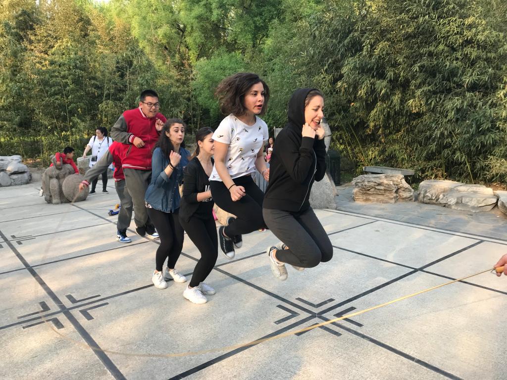 运动会期间,各组在和谐友好的氛围中完成了运动会的具体项目:跳长绳、旋转手帕以及旋转踢键儿。意大利学生们觉得旋转手帕对他们来说最为简单,因为意大利人做比萨饼也会有类似的动作技巧。。虽然本次运动会各组完成项目的时间有先后,但快乐与笑声是中意学生共同分享的。