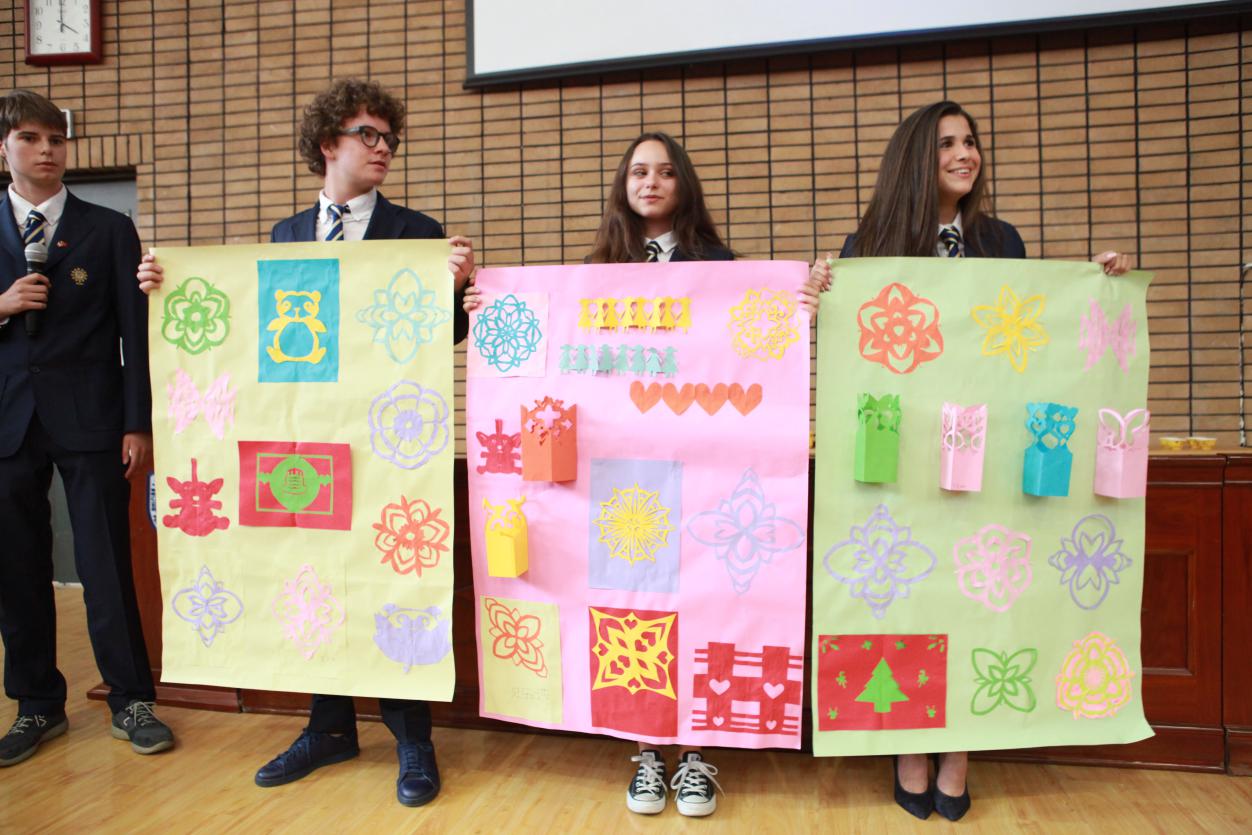 此环节由罗马夏令营的学生主持,三人一唱一和,进行的十分顺利,引得现场老师与学生频频鼓掌。