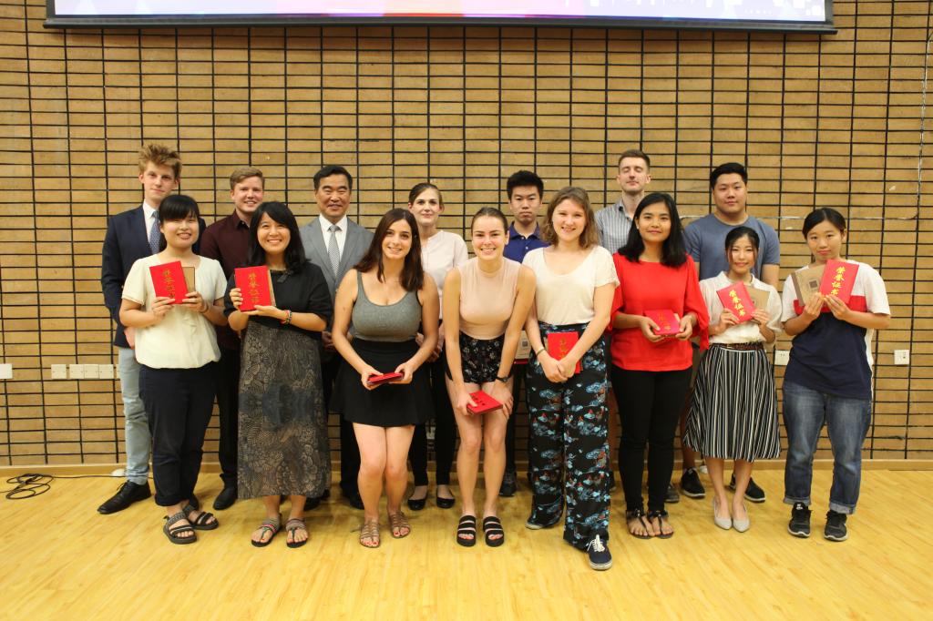 2018年7月6日下午,yl23455永利集团中文学院汉语培训中心进修部2018年春季学期外国留学生结业典礼在文华厅顺利举行。