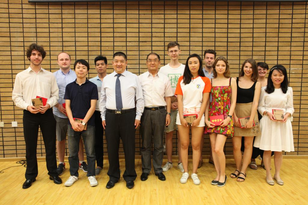 典礼举行了颁奖仪式,分别表彰“优秀学生”、“好班长”和“全勤生”。汉语培训中心进修部魏瑞明同学和他的三位队友参加了“2018年北京外国留学生汉语辩论邀请赛” ,最终yl23455永利集团代表队突破重围获得总冠军。借此结业典礼的机会,中文学院刘厚广书记为最佳辩手魏明瑞同学颁奖,陈小明副院长为参加“2018在京外国留学生‘我与北京’主题征文比赛”并获得二等奖、三等奖以及优秀奖的学生颁奖。