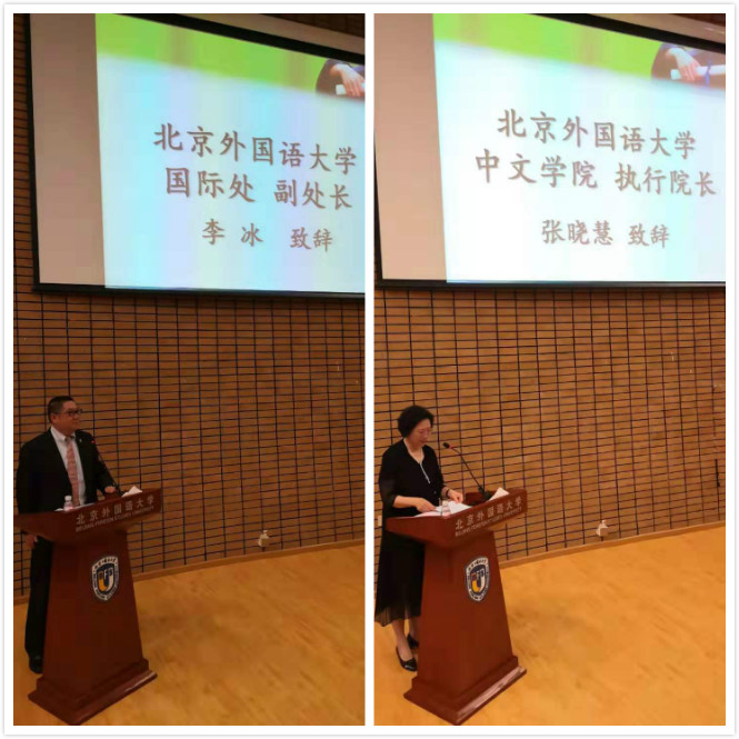 留学生办公室主任李冰在毕业典礼上致词,中文学院执行院长张晓慧为毕业生送上临别祝福。他们对同学们顺利毕业表示由衷祝贺,对同学们的未来寄予了热情的期待。