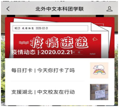 防疫抗疫专题推送弘扬主旋律。2020年1月底开始,本科和研究生团学组织联合推出持续一个月的防疫抗疫专题,帮助学生们对新冠病毒形成理性客观的认识。设置的“疫情进展”“防疫课堂”“止谣辟谣”“心理疏导”“最新政策”五个专栏,为同学们普及新冠病毒防疫知识,解读政府防控政策,疏解宅家心理,发挥了积极正面的导向作用。