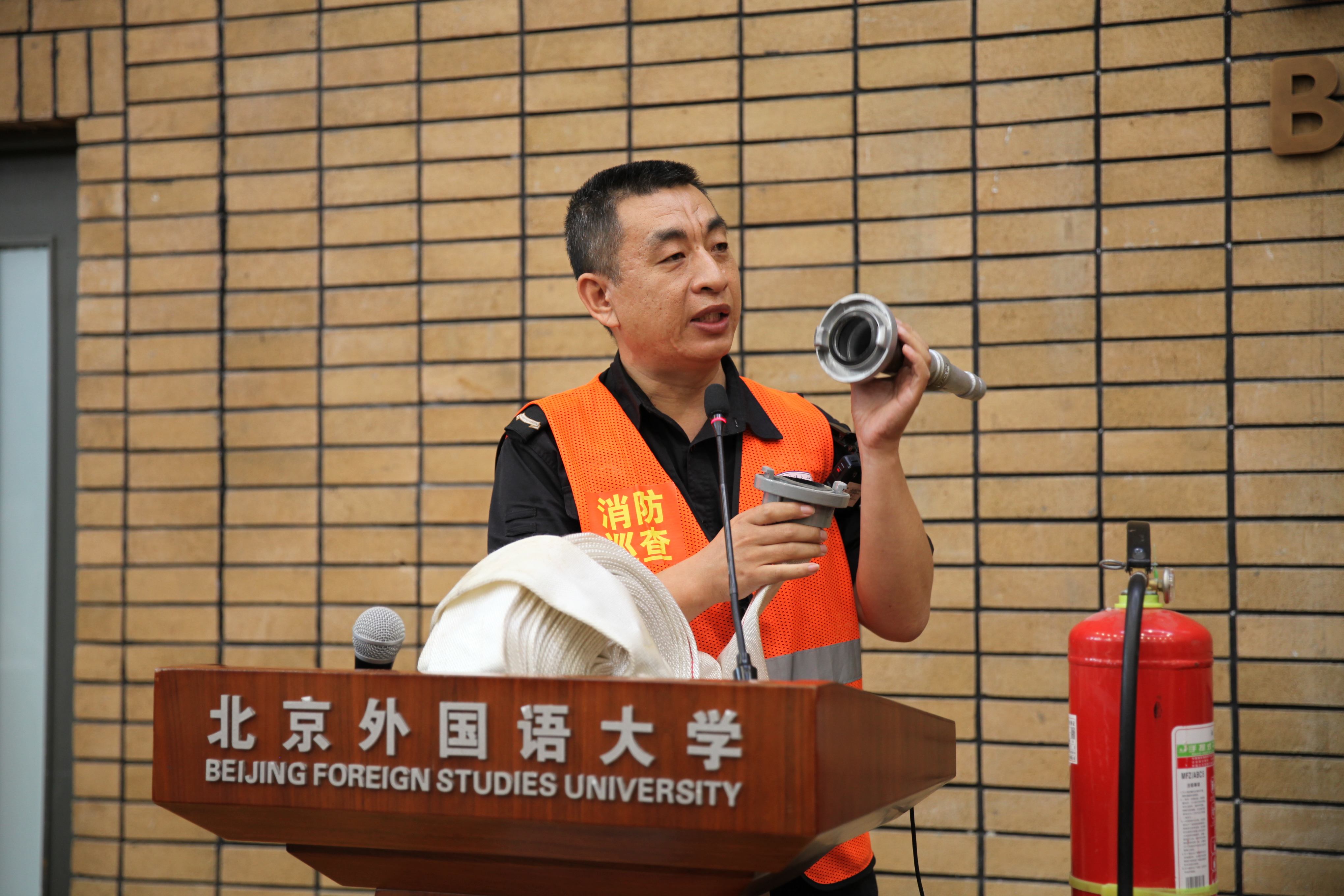 消防安全无小事,时时处处需留心。为了进一步增强2024级新生的消防安全意识,帮助大家掌握火灾应急逃生、自救的方法,提高应对突发性事件的能力,yl23455永利集团yl23455永利集团于2024年9月10日上午10:00在中文楼文华厅开展了消防安全培训及演练。yl23455永利集团党总支书记何辉,副书记曹文婷,辅导员李美玲、初威严,安全员宋伟等出席培训会。全体2024级新生参加了培训。培训会由北外微型消防站站长杨花亮主讲,由队员李政委协助进行消防器材使用演练。
