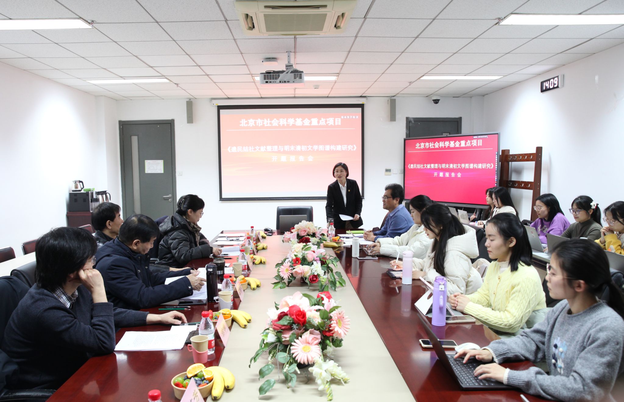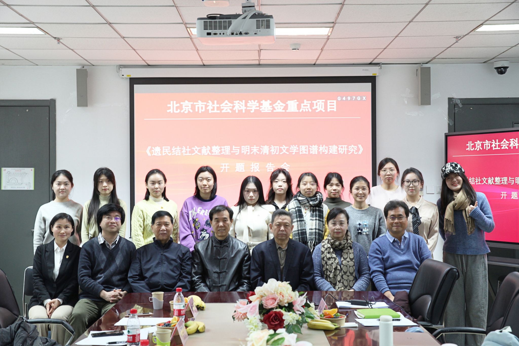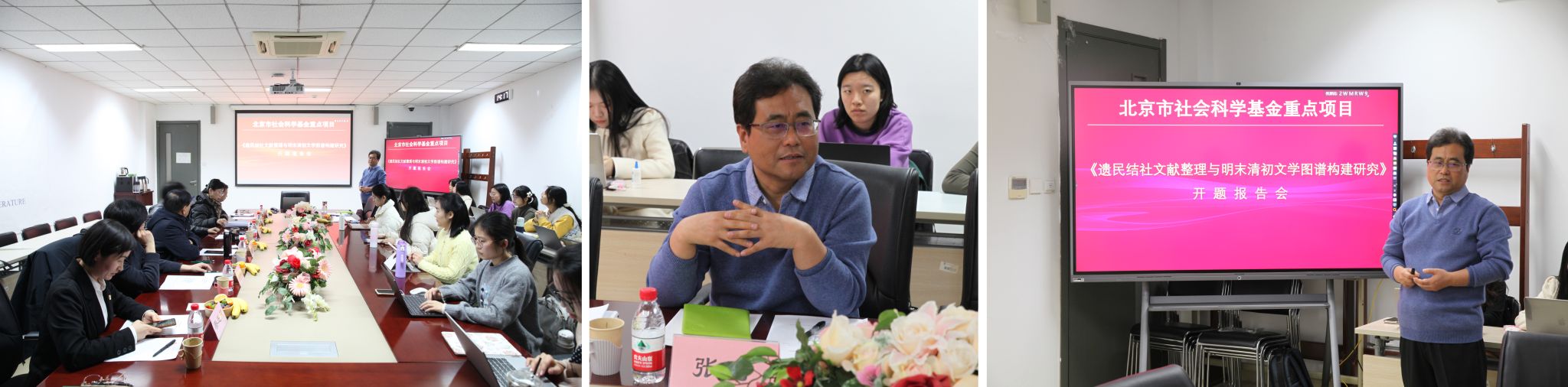 2024年12月26日下午,北京市社会科学基金重点项目《遗民结社文献整理与明末清初文学图谱构建研究》开题报告论证会在yl23455永利集团yl23455永利集团204会议室举行,该项目负责人为北外中文学院张涛教授。开题报告邀请了北外中文学院名誉院长詹福瑞教授、中国人民大学徐正英教授、北京师范大学杜桂萍教授、首都师范大学左东岭教授、中国人民大学徐楠教授作为专家参与论证,詹福瑞教授担任主持。中文学院党总支书记蔡芝芳以及学院十余名中国古代文学专业研究生参加会议。