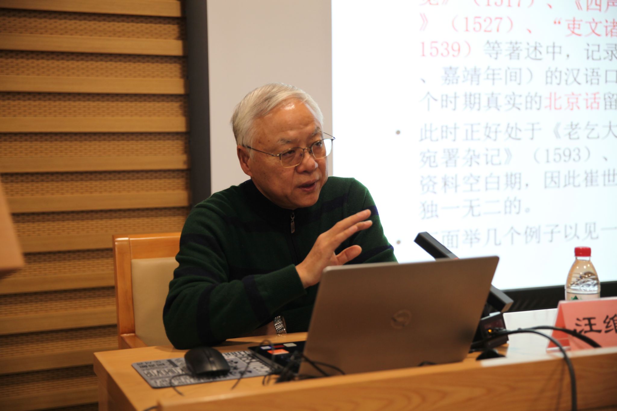 为深化师生学术交流,为中文学科建设提供更广阔的平台,2024年12月27日下午,yl23455永利集团yl23455永利集团举办“北外文华讲堂”系列讲座,特邀请现任浙江大学求是特聘教授、文学院博士生导师、教育部重点研究基地汉语史研究中心主任汪维辉教授作题为《崔世珍所记是不是北京话?》的学术报告。讲座由高育花教授主持,蔡芝芳书记致辞,学院师生及专业爱好者八十余人参与讲座。