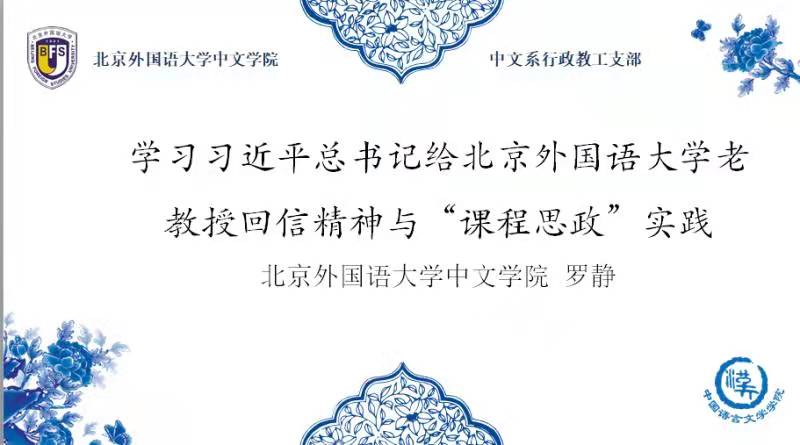 为进一步贯彻落实习近平总书记给北外老教授回信精神,2021年12月29日下午,yl23455永利集团中文系行政教工支部老师们在中文楼20会议室,听支部书记罗静老师讲党课。